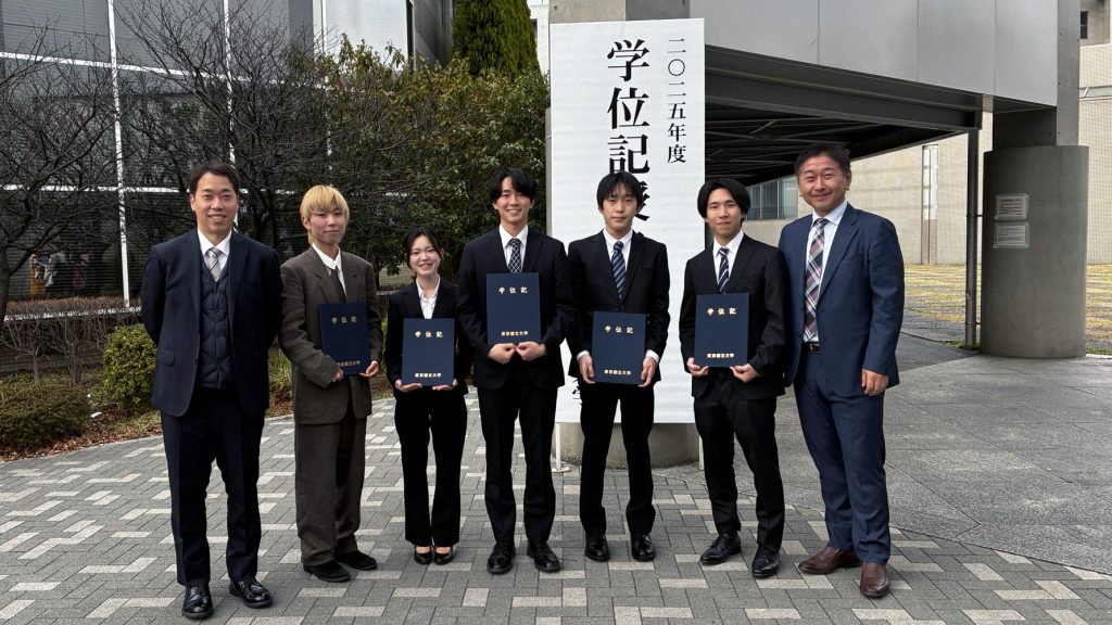 研究室から博士2名、修士5名、学士6名それぞれに学位が授与されました。おめでとうございます。